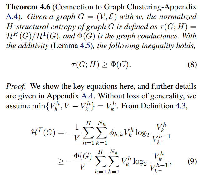 This part shows some general properties of the new formulation and theoretically demonstrates the inherent connection between structural entropy and graph clustering. We first give an arithmetic property regarding Definition 4.3 to support the following claim on graph clustering. The proofs of the lemma/theorems are detailed in Appendix A.