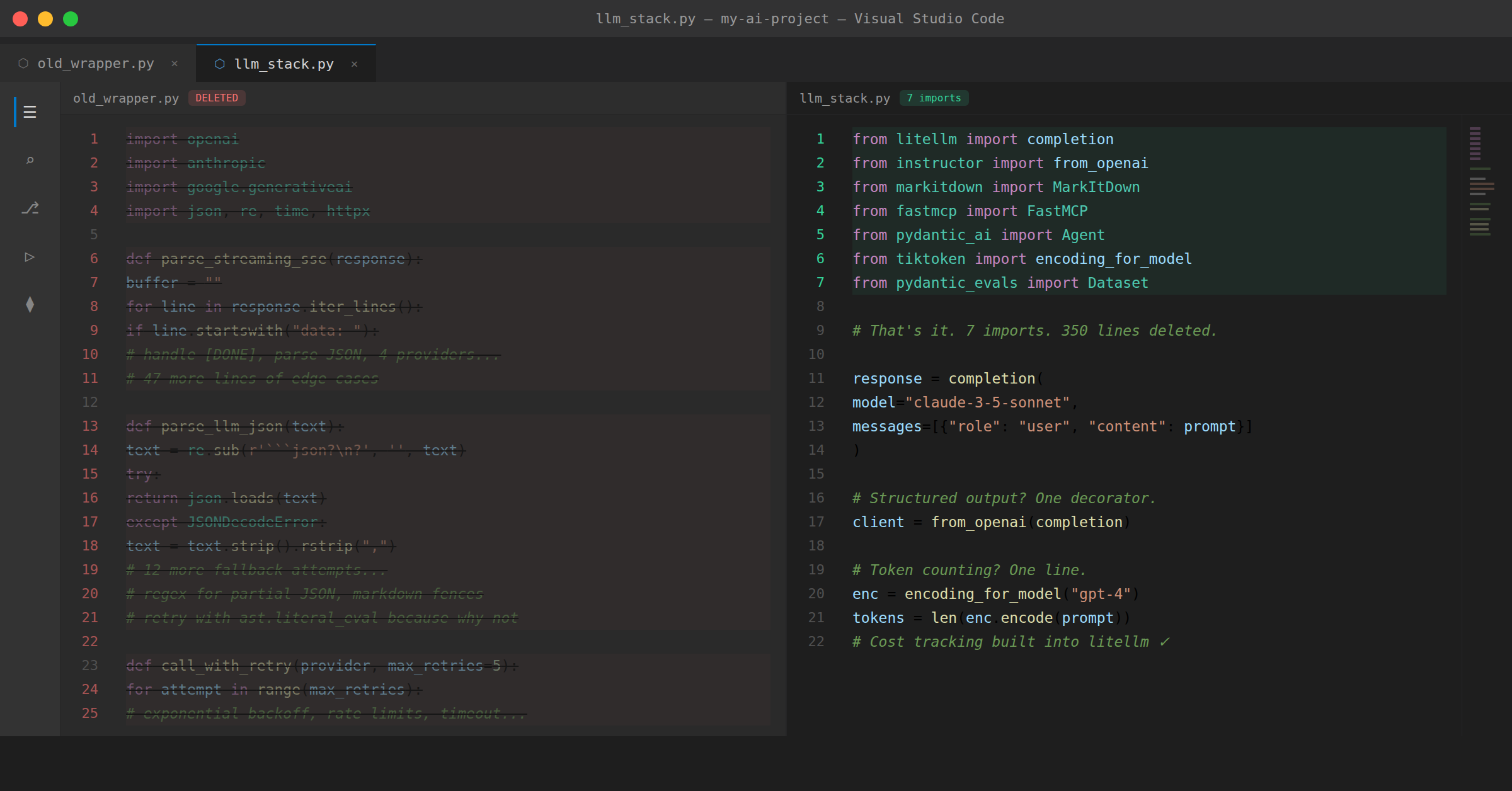 By @paoloap [ 7 Min read ] Replace custom LLM wrappers with 7 production-tested Python libraries. Covers LiteLLM, Instructor, FastMCP, PydanticAI, tiktoken, and more with code examples. Read More.