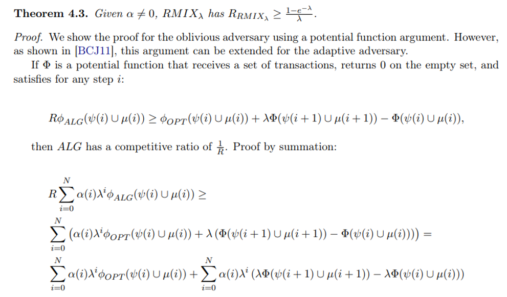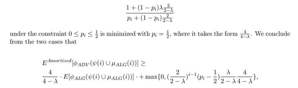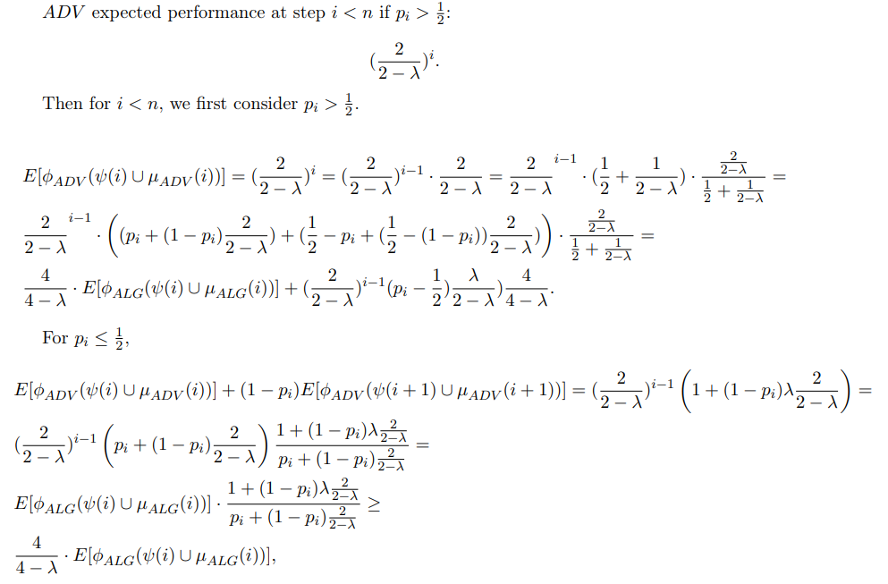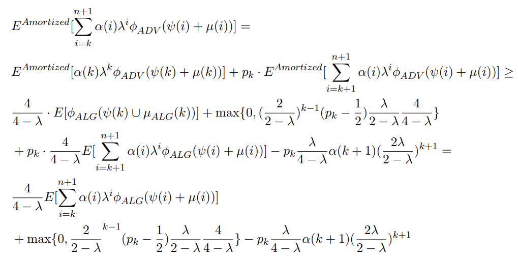 Notice that this amortization of considering the i + 1 is only relevant for ADV, as ALG in such case necessarily has no transactions remaining to choose from at step i + 1.
