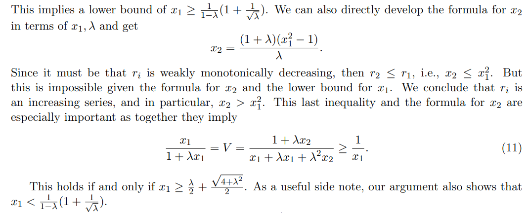 We now note that a few facts that hold true for any n when x1 ≥ ℓ + ϵ: