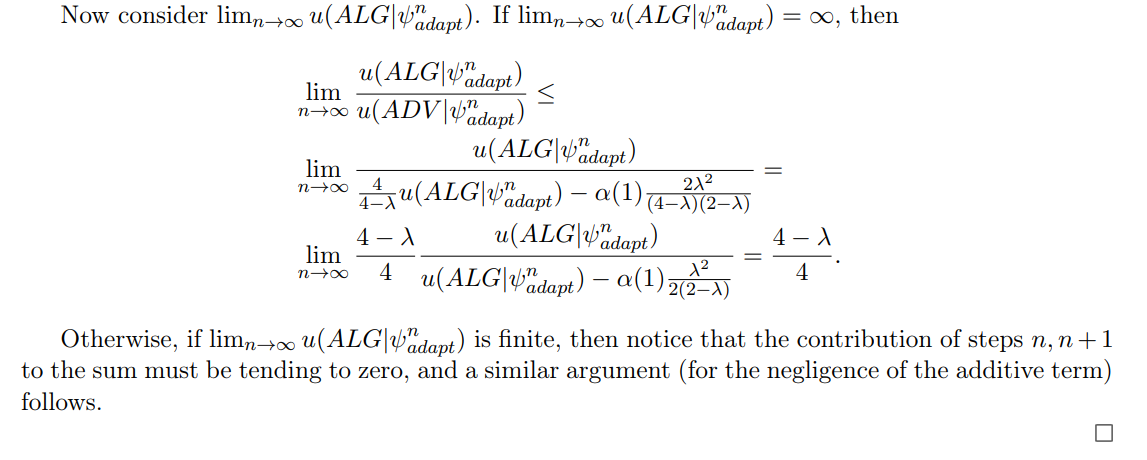 We now compare ALG and ADV ’s performance in different steps along the adversary schedule, separating the steps before n and the last two steps.