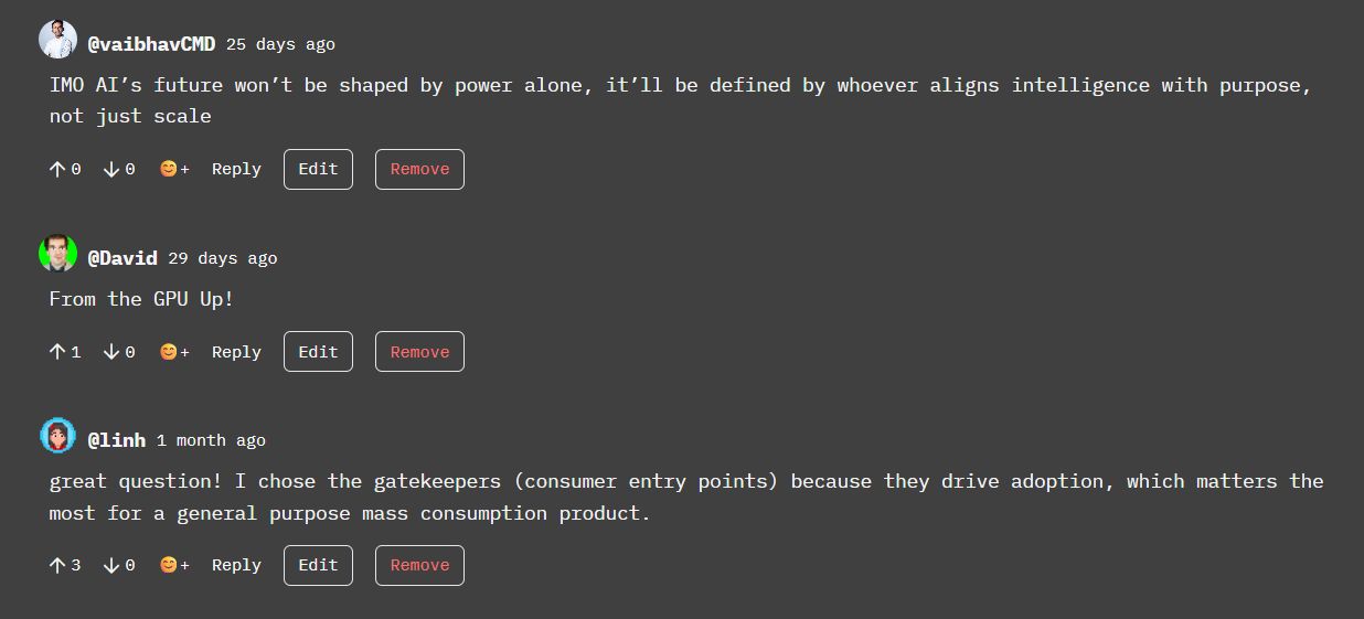 Meanwhile, 26% of voters picked the battle over consumer entry points. If AI becomes a layer between you and everything else — messages, maps, shopping, work — then the gatekeepers aren’t the GPU makers or the model builders. They’re the ones who own your interface. In that world, the “app” as we know it might disappear. The “assistant” becomes the operating system.