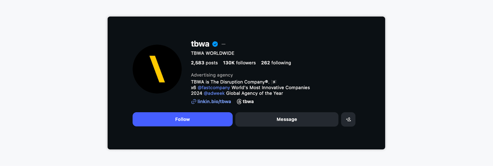 TBWA is a global advertising agency known for its “Disruption” methodology and work with major international brands.