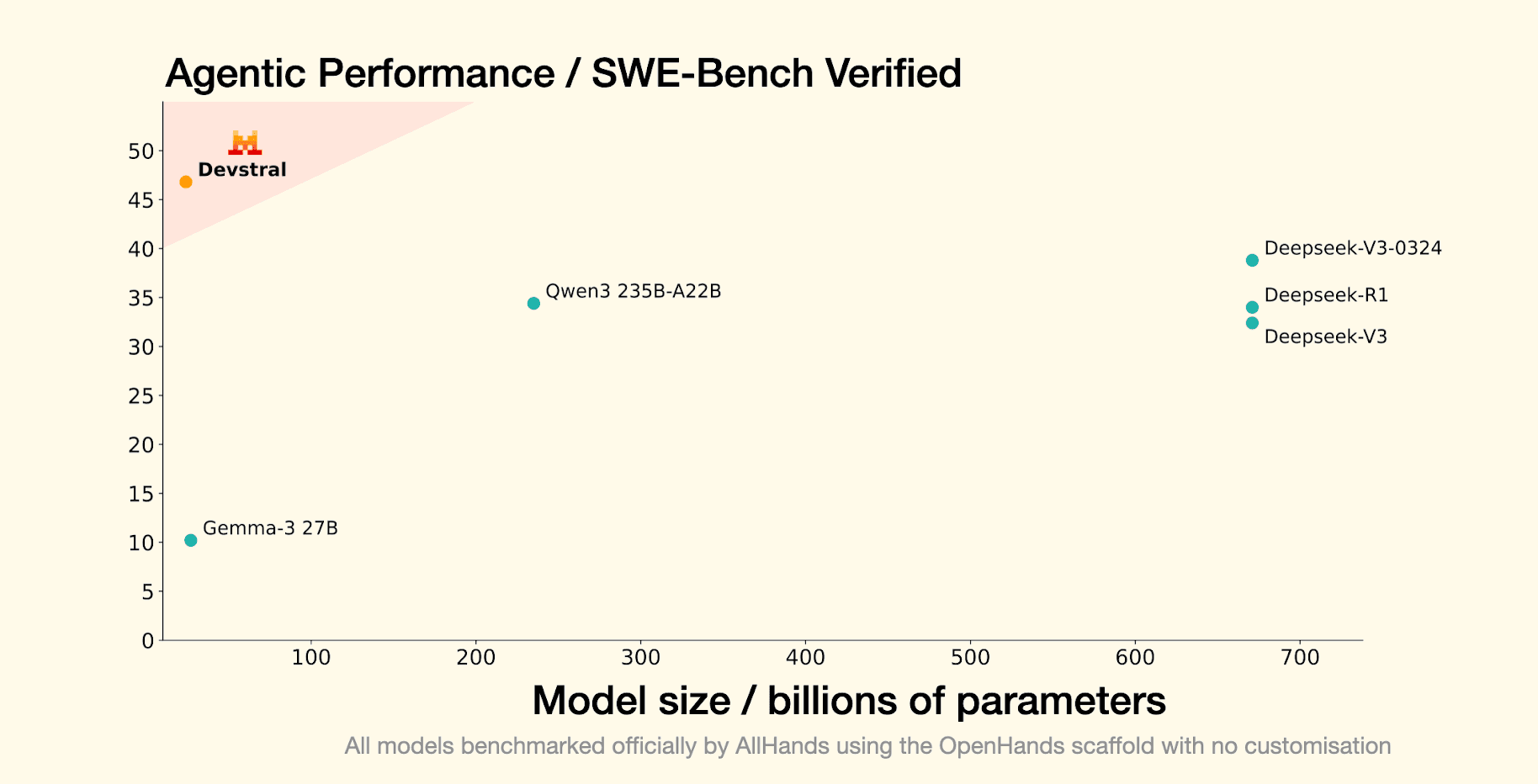 Mistral’s new Devstral model tops SWE-Bench Verified for open-weight LLMs. Read More.