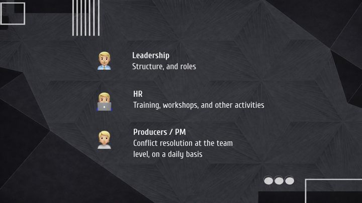 And the opposite is also true: if producers, PMs manage to set up a process where the team can deliver results independently, the project will keep moving even with an imperfect structure above. The team can build temporary workarounds, adapt, find practical solutions — and continue delivering on time.