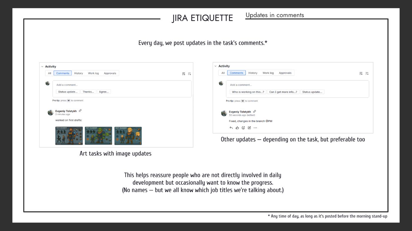 That’s how the idea was born: to create a simple, lightweight guide for developers on how to work with this mysterious creature — not in theory, but specifically for our project. And most importantly, to explain why using it properly matters, especially in the context of distributed (outsourced) development.