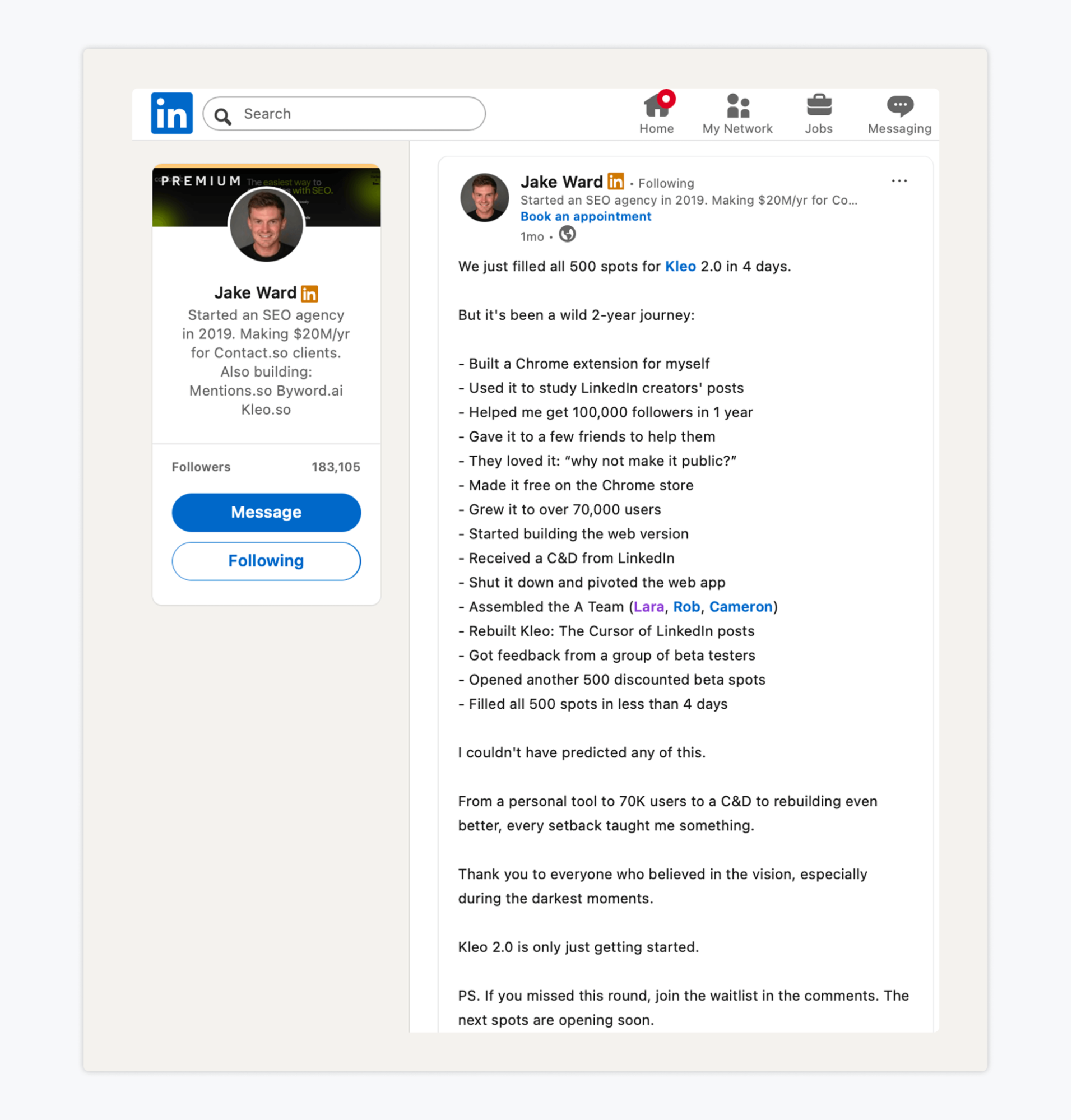 If you’re a founder or somebody in an executive position, in 2026 you should try to show up more on LinkedIn. Don’t miss an opportunity to humanize your brand.