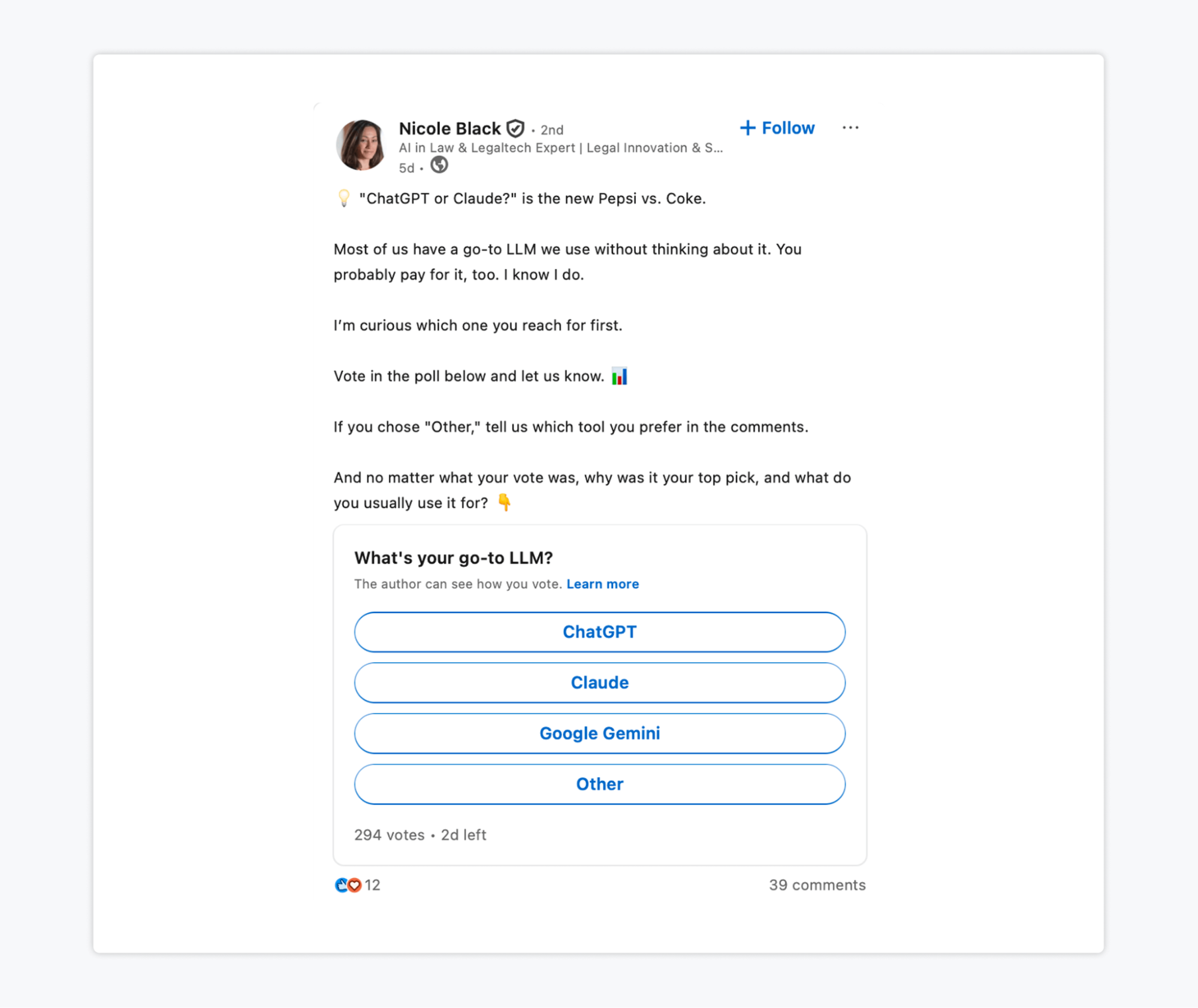 With this in mind, in 2026 you should not only be posting but also actively encouraging engagement. Use LinkedIn polls to transform your audience from passive content consumers to active participants. Polls can also help you gauge your audience’s interest in new features or products and understand common challenges they face.