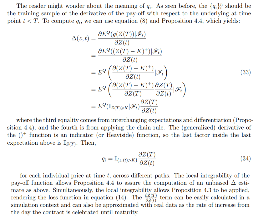 All the details of this implementation can be found in Huge and Savine, 2020. Examining equation (30), the first part is the same loss function as in the LSMC case. Still, the second part constitutes the mean square difference between the differential labels and the derivative of the entire neural network with respect to price. So, we need to obtain the derivative of the feed-forward neural network. Feed-forward neural networks are efficiently differentiated by backpropagation.
