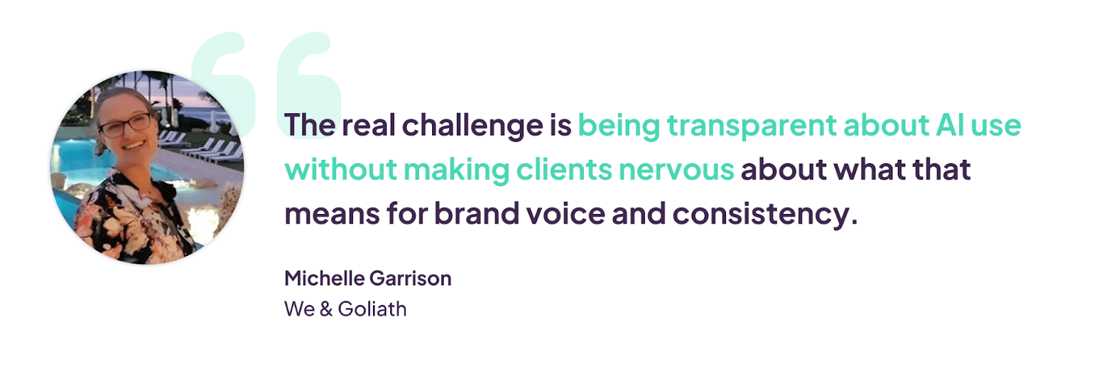 “The real challenge is being transparent about AI use without making clients nervous about what that means for brand voice and consistency. Allow them to select the level of human oversight they want to feel confident.”– Michelle Garrison, Event Tech and AI Strategist, We & Goliath