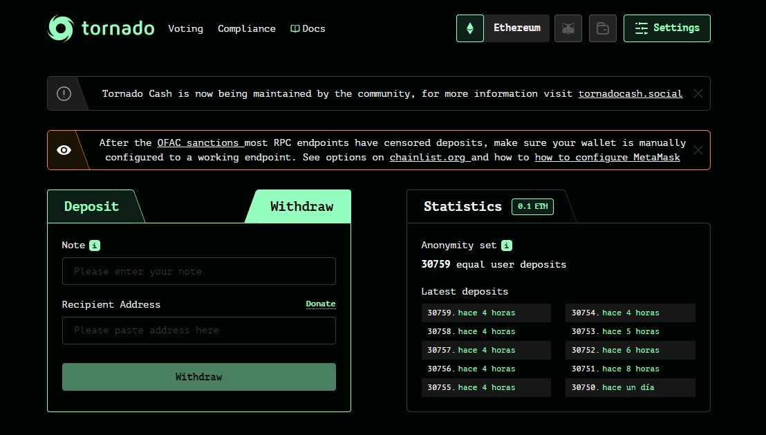 Tornado Cash (and Ethereum)