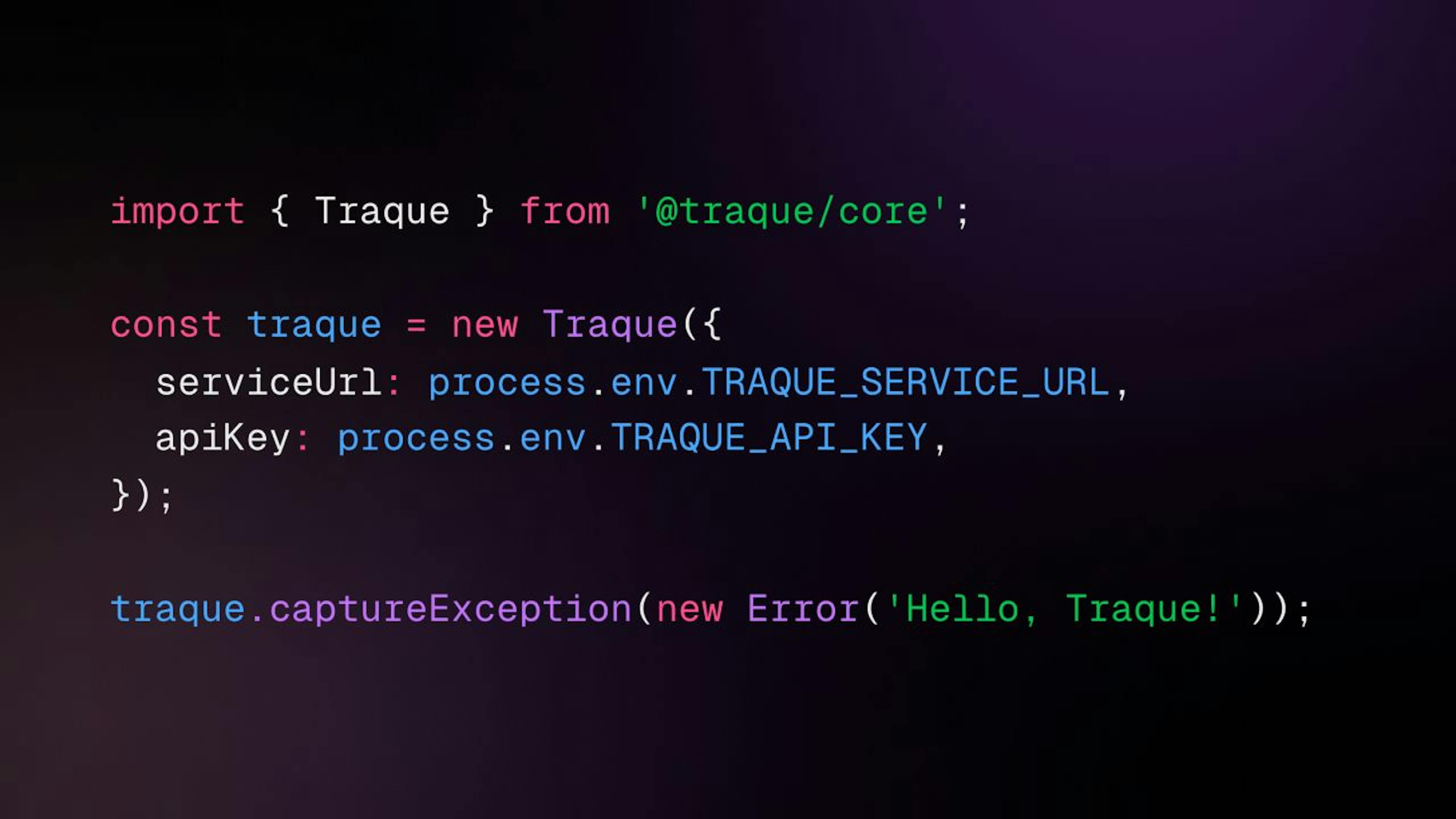 Traque works in two main ways: it tracks errors automatically and lets you track custom events manually.